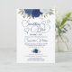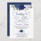 Diese schöne Brautdusche bietet ein rustikales, schicke Design mit handgemalten Aquarellfarben-Rose in staubblauen, marokkanischen und indigofarbenen Tönen. Der Titel lautet "Etwas Blau bevor ich schreibe in elegantem, modernem Schriftzeichen mit Schnörkeln, Swashes und niedlich romantischen Herzen. Es gibt Platz für UAWG- und Registrierungsinformationen. Wunderbarer Weg, um die Braut zu sein zu feiern!