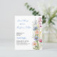 Ein schick weißer Hintergrund. Die Wildblumen sind in Rosa, Blau und Gelb gehalten. Personalisieren und fügen Sie den Namen der Braut zu sein und Party Details. Text: Etwas Blau bevor ich tue. 1 Blatt = 1 Einladung mit Druckkante bis Kante.