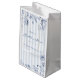 Versenden Sie Ihre Gäste nach Hause von Ihrem "etwas blauen" Hochzeitsdusche mit einer benutzerdefinierten Geschenktüte mit klassischen Chambray-Streifen und navyblauer floraler Linienkunst.