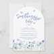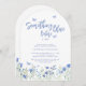 Planen Sie eine besondere Brautparty? Diese charmante florale Brautparty-Architektur-Einladung ist mit blauen Wasserfarben-Blumen und Schmetterlingen dekoriert. Sie sagt "Etwas Blaues vor meiner Hochzeit" in stilvoller Schreibschrift-Typografie. Einfach anpassbar. Original-Wasserfarbe © Michele Davies.