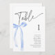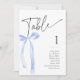 Coquette Blue Bow Tischnummer Cards für ein "She's Tying the Knot" oder ein "Something blue before I do I" themed Brautparty. In dieser Kollektion sind auch passende Einladungen, Gehäusekarten und Schilder erhältlich.