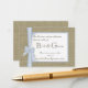 Der Look von Burlap und Blue Bow wurde auf dieser Hochzeitseinladung für die Braut- und Bräutigwebseite gedruckt. Fügen Sie den passenden Einladungen hinzu, passen Sie den Text nach Bedarf an. Dieses Produkt ist gedruckt. Kein echter Einbruch und kein echter Bogen sind auf diesem Produkt enthalten.