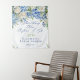 Elegantes und feminines "etwas Blau vor mir"-Brautparty-Design mit Aquarellmalerei Blumenarrangements von blauen Hydrangea-Blume, Grün und weißen Rosen.