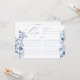 Dieses etwas Blue Toile Blumenrezept weist eine Vintage Blume-Design und tönige Kalligraphie in blau vor einem weißen Hintergrund auf.