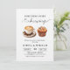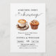 Eine warme und charmante Kaffee-Themen-Einladung zur Babyparty, die für werdende Eltern konzipiert ist, die gemütliche Atmosphären lieben. Dieses Design kombiniert elegante Typografie mit leckeren Illustrationen eines Latte und eines Schokoladen-Muffins und schafft eine einladende Café-Atmosphäre. Das saubere Layout, die weichen Akzente und der ausgewogene Abstand machen es perfekt für digitales Teilen und hochwertigen Druck.