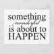 Hier ist ein lustiger Lavendel und eine schwarze Postkarte mit einer großartigen Nachricht - etwas Wunderbares wird bald passieren.