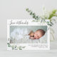 Ein modernes Eukalyptus Foto Baby danke Karte. Die Fotografien der Modelle dienen der Illustration und können auf eigene Faust geändert werden.