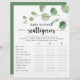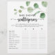 Dieses erfrischende Eukalyptus Baby Duschskattegorienspiel ist eine perfekte Unterhaltung für eine minimalistische Babydusche. Das Design bietet Aquarellfarben handgezeichnet elegante botanische Eukalyptuszweige und Blätter.
