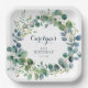 Einfaches, elegantes Geschirr aus Eukalyptus-Party. Passen Sie Ihren Wünschen für einen Meilenstein Geburtstag an.