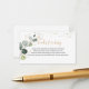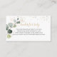 Eukalyptus Foliage und golden Blätter geschlechtsneutral Baby Shower Books für Babykarte. Oben auf der Karte - grünlich und golden Effekt Konfetti.