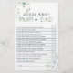 Dieses "raten Sie, wer Mama oder Papa" Babyduschenspiel beinhaltet einen Aquarellblüten Eukalyptus und grüne Blätter mit botanischen Goldbriefen. Klicken Sie auf die SCHALTFLÄCHE BLAUE DESIGN TOOL, um eine erweiterte Anpassung dieses Designs zu erhalten. Matching-Elemente sind ebenfalls verfügbar.