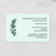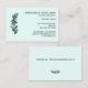 HINWEIS: Dieser Text auf dieser Visitenkarte europäischer Größe wurde so angepasst, dass er genauer passt. Diese einfache, aber elegante europäische Visitenkarte ist mit einem Eukalyptus-Single in aquamarinen Farbtönen mit Ihrem Namen, Beruf, Kontaktinformationen, Adresse und anderen Informationen in einer klassischen schwarzen Serif-Schrift auf einem mint-grünen Hintergrund entworfen. Verwenden Sie die Vorlagenfelder, um Ihre eigenen Informationen einzugeben und unnötige Informationen, wie z. B. eine Faxnummer, zu löschen oder bei Bedarf weitere Informationen hinzuzufügen. Die Rückseite hat Platz für zusätzlichen Text und zeigt einen kleineren Eukalyptusstamm an. Für weitere Anpassungen, schreiben Sie mir!