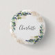 A chic white background. A chic white background. Decorated with green watercolored eucalyptus leaves, sprigs, greenery, faux gold leaves and golden glitter spots. Personalize and add a name. The name is written with a modern hand lettered style script.