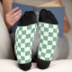 A vibrant checkerboard pattern with alternating neon yellow and black squares creates a striking geometric design, conveying a bold and energetic tone.