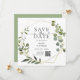 Announce your wedding date with effortless botanical elegance! This Save the Date Card features a sophisticated design where soft eucalyptus greenery drapes gracefully over a chic geometric frame. All your important details are presented in a timeless, elegant serif font, setting a refined tone. The heading, 'Save The Date,' is a beautiful focal point, combining the strong serif font with the romantic touch of the word 'The' written in a delicate script adorned with tiny hearts. It’s the perfect way to send a stylish Unique Save the Date preview of your modern, elegant celebration.