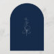 This arch-shaped wedding invitation features a deep navy blue background with white script text. thin line art eucalyptus springs add a soft and elegant botanical touch. The curved arch shape creates a modern and stylish look. This design is perfect for couples who want a refined, minimalist, and contemporary navy blue wedding theme.