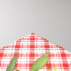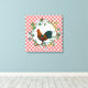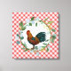 Großartiges Design für Ihr Bauerndekor - mit diagonal picknickrotem kariertem Hintergrund mit Eukalyptuskranz in Aquarell und farbenfroher Hahnenzeichnung