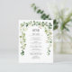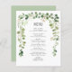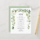 Dieses stilvolle, rustikale Hochzeitsmenü bietet einen zarten eukalyptusgrünen Bogen in Aquarellen. Der Titel und der Text erscheinen in zwei koordinierenden kochgrauen Sans Serif-Schriftart. Die Rückseite ist massiv blassgrün.