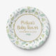 Eine elegante Eukalyptusblattpapiertplatte für ein botanisches, grünes Babyduschthema. Entworfen für Sie von BlackBerry Boulevard.