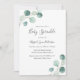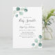 Elegantes, geschlechtsneutrales Baby-Sprinkle-Angebot mit einem schlichten Design mit Aquarellmalerei in Eukalyptusgrün in der oberen links Ecke und in der unteren rechten Ecke. Die Rückseite ist ein passender Schatten von mittlerem Salbei grün. Diese rustikale botanische Babysprinkle-Einladung mit einer modernen Drehung ist großartig, ob es für einen Jungen oder ein Mädchen ist.