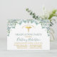 Moderne elegante Watercolor Grüne Eukalyptus Verlasse Einladung zur Medical Graduation Party. Trendy Kalligrafie Script. Gold Medical Symbol. Eukalyptus Green Back. Ideal für Krankenschwestern, Ärzte oder andere Medical Student Absolventen.