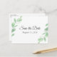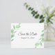 Elegante Save the Date Karte mit Aquarell Eukalyptus-Blätter für Hochzeitsfeiern.