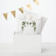 Dieses Design bietet rustikale Eukalyptus-Blätter. Die Eukalyptus-Vegetation wird durch einen eleganten, schwarzen Rahmen ergänzt. Die staubigen grünen Töne des Eukalyptusblattes schaffen ein rustikales Waldgarten-Ambiente. Elegantes Hochzeitsgunst im Taschendesign mit modernen Elementen. Auch die passenden Hochzeitseinladungen und andere Schreibwaren sind verfügbar.
