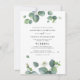 Botanische Grüne Eukalyptus Blätter Wedding Einladung können Sie leicht mit Ihren Hochzeitsdetails ändern. Mit einem sukkulenten Blattwerk mit moderner Typografie auf weißem Hintergrund