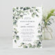 Diese exquisite, wasserfarbene Eukalyptuszweige mit platzierten Punkten Hochzeitsfeier Einladung ist perfekt für jeden Garten, draußen, formell, Vintag, romantisch Hochzeit. Es ist sanftes Blumendesign, modern und doch traditionell. Wählen Sie Diese Vorlage personalisieren aus, um sie individuell zu erstellen. In Sekundenschnelle werden Sie Ihre atemberaubenden Hochzeitsfeierlichkeiten einladen.
