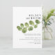 Einfache, handbemalte Aquarellmalerei in Grün, Weiß und Goldblättrig Eukalyptus-Blätter Hochzeitseinladungen sind perfekt für jedes elegante und raffinierte Glam-Mädchen. Dieses Design eignet sich ideal für trendige und stilvolle Party-Events. Design mit Ihrer Nachricht und Informationen. Alle Designs sind gedruckt.