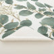 Dieses Design bietet Eukalyptus-Blätter und Äste auf weißem Hintergrund. Das Design ist flach, grafisch und sanft grün und goldfarben. Das Muster besteht aus Blätter und Verzweigungen, die in eine andere Richtung angeordnet sind.