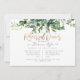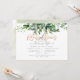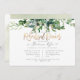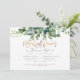 Aquarell Blume rustikale blaue Kaugummi und Grünanlagen mit schönen dunklen Schattierungen Eukalyptus Blattwerk. Akzent mit eleganten und modernen Imitate Gold handgeschriebene Drehbuch Probe Dinner Einladungen. Wasserfarbe auf umgekehrter Seite mit DIY Hintergrundfarbe.