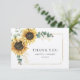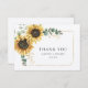 Für alle, die Ihren besonderen Tag mit Ihnen feierten, ist diese elegante botanische geometrische Blumenkarte mit Sonnenblumen und Eukalyptus-Blätter, mit goldgeometrischen Rahmen, perfekt, wenn Sie gewollt sind, sich zu bedanken. Ändern Sie einfach die Details auf der Vorderseite und die benutzerdefinierte Meldung auf der Rückseite, indem Sie auf die Schaltfläche "Personalisieren" klicken