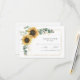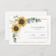 Erstellen Sie eine moderne RSVP-Karte für Sonnenblumen mit dieser niedlichen Vorlage mit einem wunderschönen rustikalen Blumenstrauß, einem geometrischen Rahmen für Goldeffekte, mit moderner Typografie. TIPP: Passende Hochzeitssuite-Karten wie Save the Date, Hochzeitsprogramme, Banner, Tapisserien, Geschenketiketten, Schilder und andere Hochzeitsgeschenke und Goodies sind in der folgenden Kollektion mit diesem Design erhältlich.