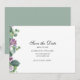 Moderne Eukalyptus Botanische Schrift Save the Date Karte. Lila und grünes Blattwerk mit Schriftzeichen.