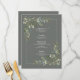 Mit diesem angesagten 6.5"x 8.75" Menü-Design in eukalyptus-botanischem Aquarellblumendesign schaffen Sie den perfekten Empfang. Ideal für, aber nicht beschränkt auf diesen Garten und Garten Hochzeit. Teil eines entsprechenden Set. Die vollständige Sammlung finden Sie hier: https://www.zazzle.com/collections/eucalyptus_botanical_sage_green_script_wedding-119437527356989510 Kontakt-Designer für weitere Produkte in diesem Design, oder Designvarianten. Copyright Elegant Invites, alle Rechte vorbehalten.