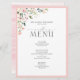 Mit diesem angesagten 6.5"x 8.75"-Menü, das mit einem Blumenstrauß von sanften, wasserfarbenen Rose in Rosa, Pfirsich und Weiß gestaltet wurde, schaffen Sie den perfekten Empfang. Die botanischen Blätter in den Farbtönen Liebe und Eukalyptus sind üppig grün und in Rosa gehalten. Personalisieren Sie Ihre Details mit schönen modernen handgeschriebenen Kalligrafien in weichem Offschwarz. Ideal für, aber nicht beschränkt auf diesen Garten und Garten Hochzeit. Teil eines entsprechenden Set. Die vollständige Auflistung finden Sie hier: https://www.zazzle.com/collections/elegant_pink_watercolor_floral_wedding_suite-119378725026193431 Kontakt-Designer für passende Produkte. Copyright Elegant Invites, alle Rechte vorbehalten.