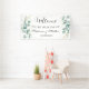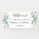 Moderne, elegante Eukalyptus, Aquarellsommer Hochzeit Begrüßungsbanner. Rustikales, grünes Banner. Ideal für Hochzeiten. Sie können es mit Namen und Datum personalisieren.