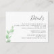 Eine einfache Hochzeitseinladung Details Umschließung Karte, um Ihre Herbsthochzeit Einladung Suite ergänzen. Dieses Design verfügt über einen Aquarellzweig eucalyptus mit einem handgeschriebenen Schriftart und Ihre Details in Sans Serif Schriftart.