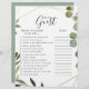 Dieses Eukalyptus-Brautparty findet, dass das Gast-Spiel ist ein perfektes für einen modernen Polterabend. Das Design besticht durch einen goldgeometrischen Rahmen, der die eleganten, grün grünen Eukalyptus-Blätter schmückt.