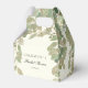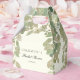 Stilvolle Brautparty Gvor Box mit einem weichen Eukalyptusblatt-Design in Weiß und Beige auf einem sauberen, weißen Hintergrund. Es ist mit dem Namen und dem Duschdatum der Braut individuell gestaltet und eignet sich ideal für elegante und naturlich inspirierte Feierlichkeiten. Ideal für Leckereien, kleine Geschenke oder danke Überraschungen für Ihre Gäste.