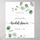 Dieses grüne Eukalyptus-Brautparty-Willkommensplakat ist perfekt für einen einfachen Polterabend. Das Design bietet Aquarellfarben handgezeichnet elegante botanische Eukalyptuszweige und Blätter.