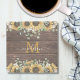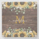 Dieser elegante Untersetzer aus Stein besticht durch gelbe Sonnenblumen, Eukalyptus-Blätter und ein maßgeschneidertes Monogramm aus braunem Holz, das eine florale botanische Touch verleiht!