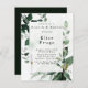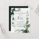 Das Design zeichnet sich durch ein bedrucktes, farbiges Blattelement in den Farbtönen von Grün und Grün, Eukalyptusblättern und Blätter in einem hellgrünen Aquarellhintergrund aus. Kalligrafie oder Schrift mit dem Design-Kunstwerk. Sammelstück mischen und abgleichen. Ideal für Ihre Hochzeitsfeiern!