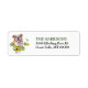 Die links Seite dieser Rücksendeadressen-Aufkleber zeigt ein Aquarellbild eines Bulldoggen unter verstreuten Sonnenblumen und Eukalyptus-Blätter. Ihr eigener Text ist rechts grün und dunkelgrau.