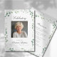 Diese Beerdigung des Lebens verbindet Eleganz und Wärme mit einem sanften Eukalyptuskranz, der ein wertvolles Foto umrahmt. Es ist in beruhigenden grünen Tönen gestaltet und bietet eine ruhige und moderne Art, die Erinnerung an einen geliebten Menschen zu ehren. Mehr als nur eine Ankündigung, lädt diese Einladung Familie und Freunde sanft ein, sich zu versammeln, sich zu erinnern und ein Leben gut gelebt zu feiern. Die friedliche Vegetation vermittelt ein Gefühl von Komfort und Kontinuität und macht sie zu einer wunderschönen Wahl für Beerdigungen, Gedenkfeiern oder die Feier von Lebensdienstleistungen. Auf hochwertigem Cardstock gedruckt, kann es mit Ihren Details personalisiert werden, um einen sinnvollen Sake zu schaffen, der Liebe und Erinnerung widerspiegelt.