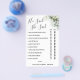 Eukalyptus Greenery Er sagte, sie sagte Brautparty Game. Ändern Sie den Wortlaut in das Design. Für weitere Anpassungen (andere Formulierungen, Schriftart, Schriftart), klicken Sie auf Personalisieren, scrollen Sie nach unten und klicken Sie auf den Link "Klicken Sie auf, um weiter anzupassen". WIE MAN SPIELEN KANN: Die Gäste raten, ob die Braut oder der Bräutigam gesagt hat, die Phrasen auf der rechten Seite der Illustrationen (Braut oder Bräutigam) ihre Antwort überprüfen. Die Person mit den korrektesten Antworten gewinnt
