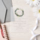 Einfache Eleganz mit diesem KJV Bible Scripture Verse: Zwei werden eins. Mit einem Eukalyptus-Blumenkranz - Grün auf eleganter, lichtdurchlässiger Vellumeinladung. Personalisieren Sie Ihre Christliche Ehe mithilfe des Designtools, um die notwendigen Änderungen am Text, Schriftart und den Farben vorzunehmen und diese Einladung einzigartig für Sie zu machen. Handschrift mit schwarzer Schrift. [Ideal für Geborene Wieder-Christen, die in Christus verheiratet werden und ihre Heirat dem LORD widmen.] Elegante Christliche Hochzeitseinladungen.