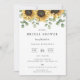 Rustikale Aquarellsonnenblume und Eukalyptus-Blumenarrangements, Brautdusche Einladung. Die Karte verfügt über eine moderne Typografie-Design-Vorlage und marineblau blaue Farbunterlage.