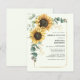 Budget Sonnenblume Eukalyptus Floral Brautparty. Mit dieser niedlichen Vorlage mit einem wunderschönen rustikalen Blumenstrauß mit moderner Typografie erstellen Sie eine moderne Blumenduscheinladung. TIPP: Passende Hochzeitssuite-Karten wie UAWG, Hochzeitsfeiern, Banner, Tapisserien, Geschenketiketten, Schilder und andere Hochzeitsgeschenke und Goodies sind in der folgenden Kollektion mit diesem Design erhältlich.